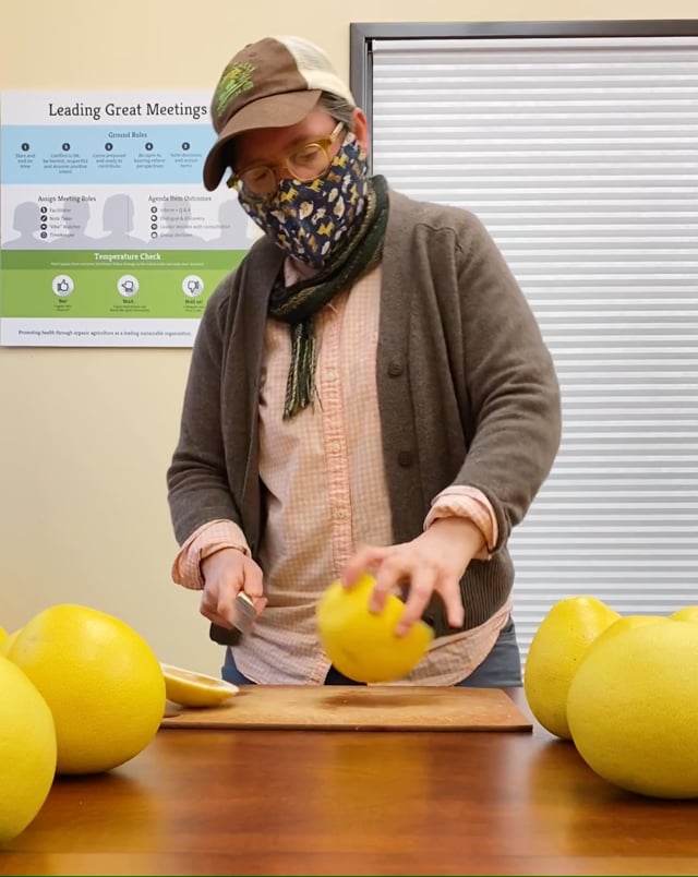 Below, watch as our own Kim Langston expertly demonstrates how to break down a pummelo!