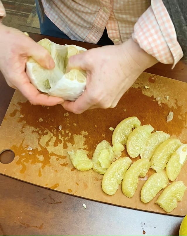 Peeling and removing the flesh of a pummelo takes some pointers, and OGC is happy to guide first-timers through this process!