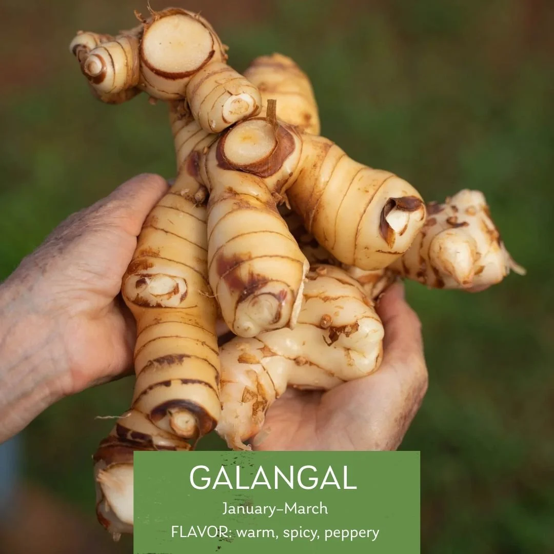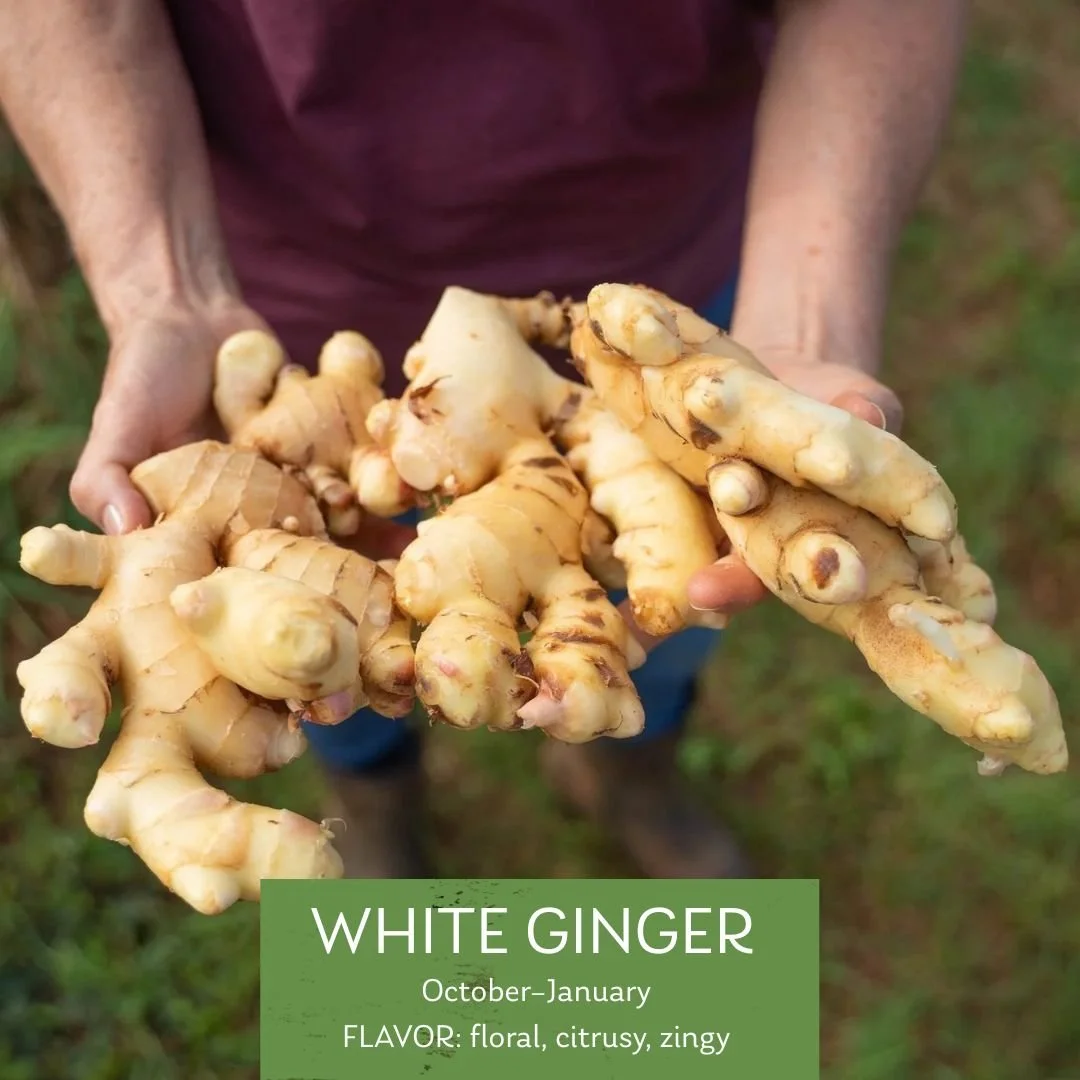 Each crop is carefully managed and available on a seasonal schedule based on its own properties. Galangal is available all year but challenging to grow because of its size—it has to be harvested with a forklift. White ginger is more susceptible to disease, and there’s a demand for it when it’s young for sushi and pickling, so it has to be harvested first. Turmeric, on the other hand, will stay good in the ground, which helps extend its season.