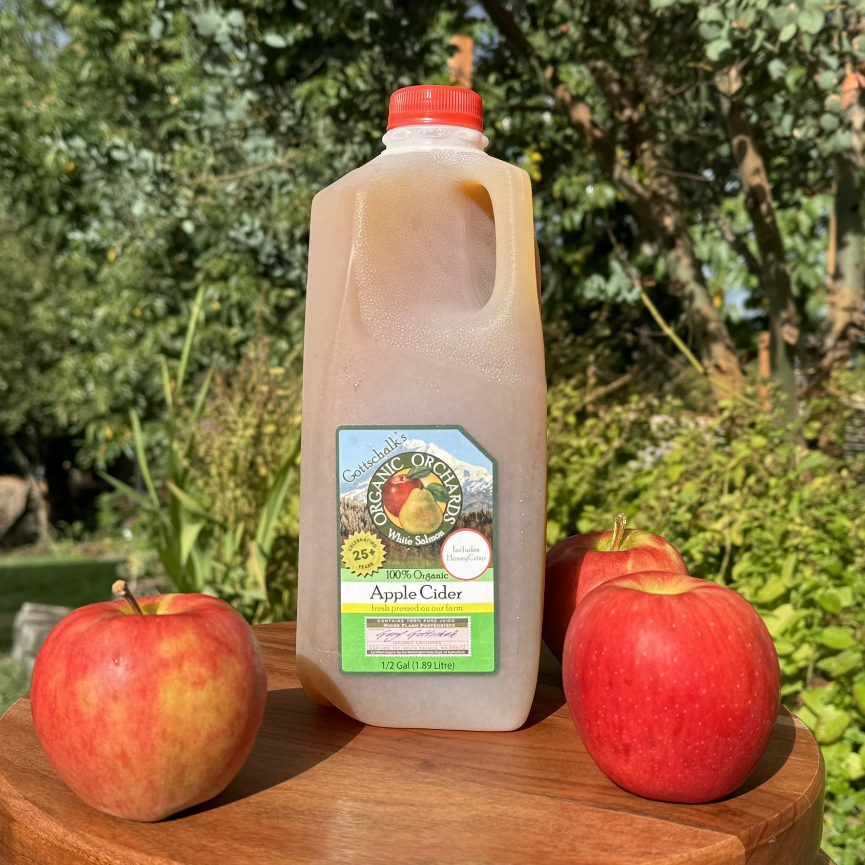 Gary and Judy Gottschalk have been growing apples and pears for cider near White Salmon, WA for almost 30 years. Gary uses different combinations of fruit to produce exceptional flavor, and the cider’s flavor shifts throughout the season as different varieties ripen in the orchard. In addition to apple cider, their pear-apple cider is made up of two-thirds Bartlett pear juice blended with apple, giving it a distinct pear forward flavor. Each bottle, made with pure juice and without additives or preservatives, is flash pasteurized, giving it a month-long refrigerator shelf life.