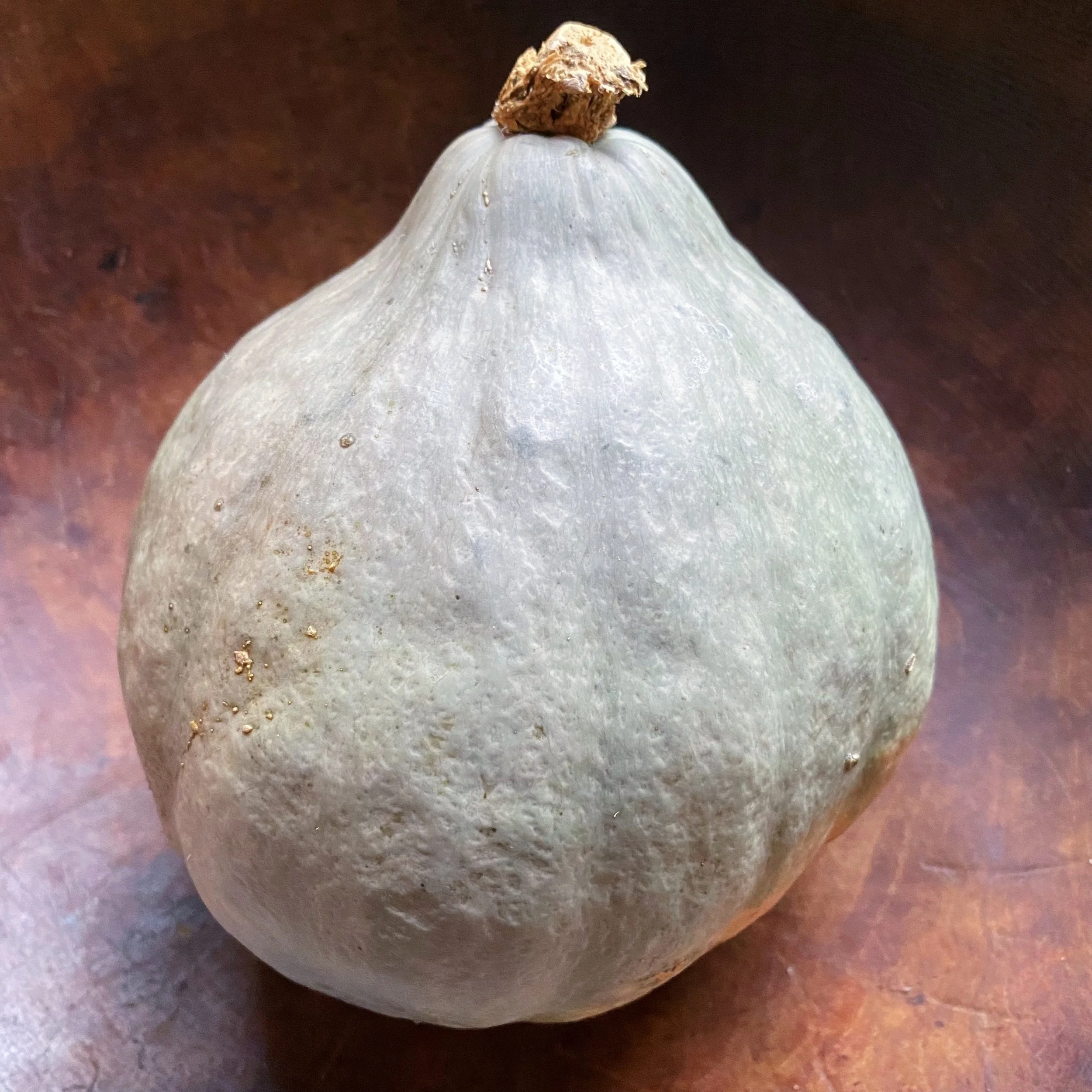 The sweet, scaled-down cousin of the often ginormous Blue Hubbard, organic Blue Ballet is easy-to-cut, fibreless, and a gorgeous addition to any squash lineup. The bright-orange flesh and gray-blue skin of this tear-dropped-shaped squash make for a stunning color contrast. It's worth considering cutting and wrapping one to showcase in displays! Wonderful for roasts and pies!