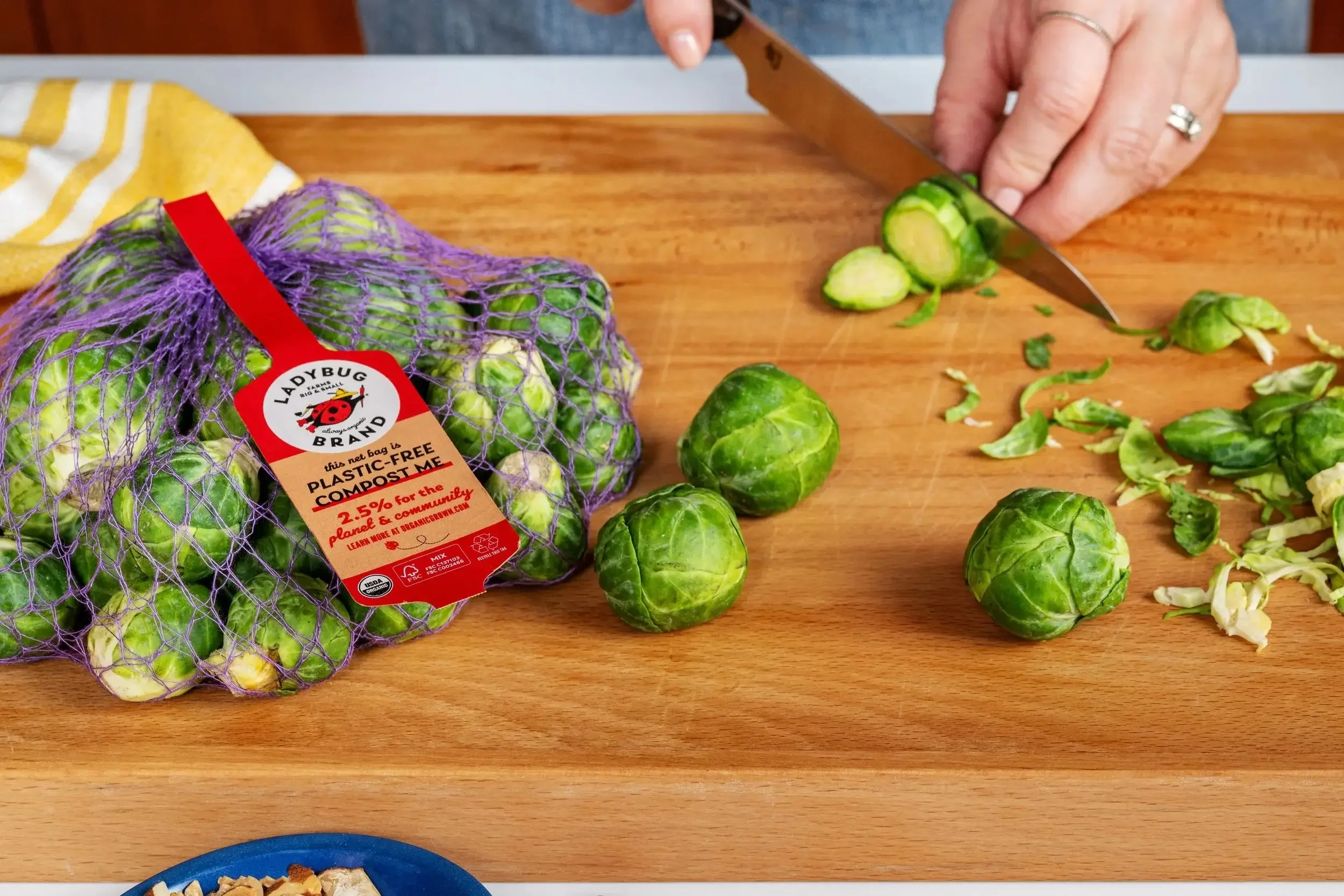 Organically Grown Company (OGC) is the US’s largest wholesale distributor of organic produce. Under its Ladybugbrand, it has been piloting a new, plastic-free mesh bag. Made from beechwood fibers, even the labels on these new plastic-free bags are paper, not plastic.