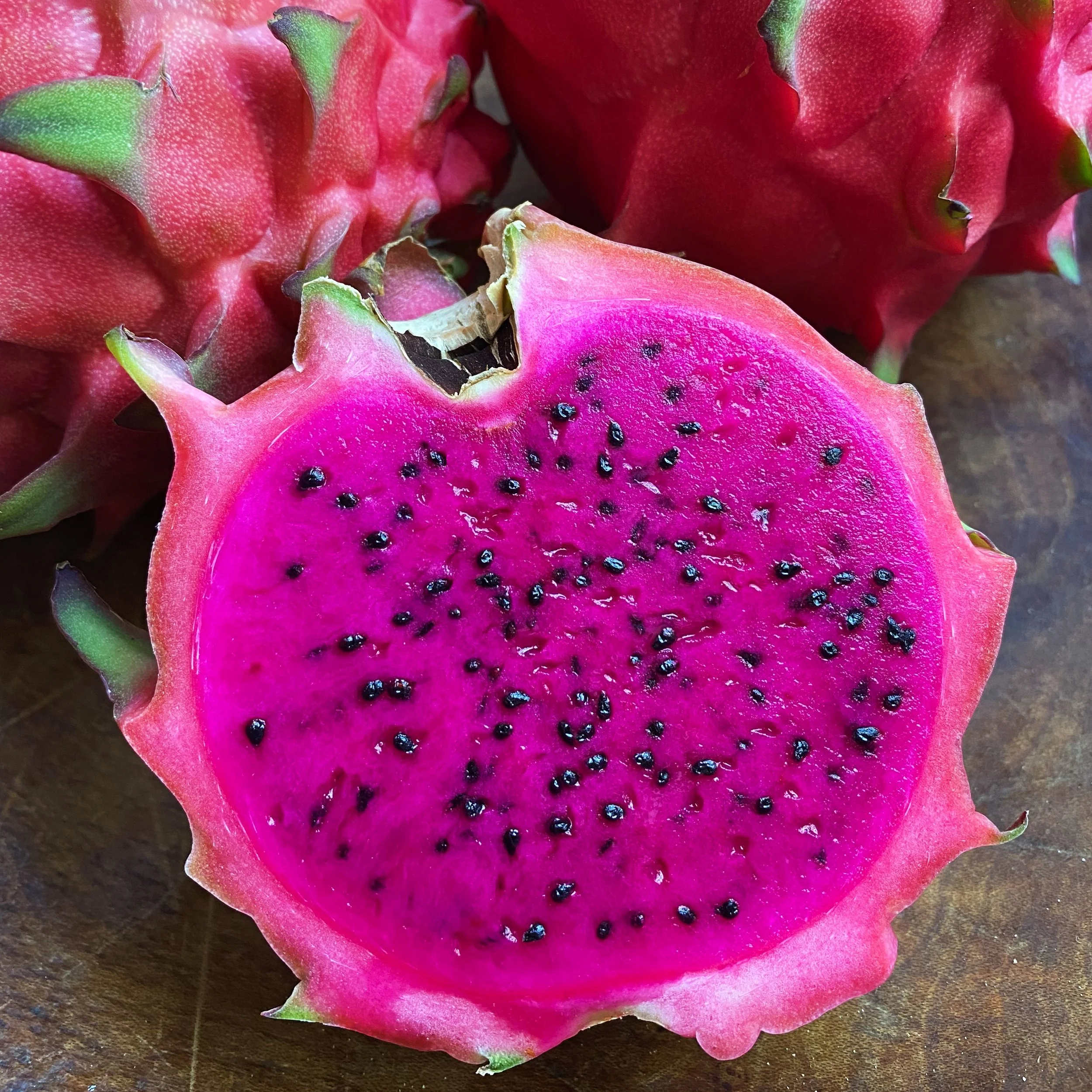 With stunning vibrant skin and flesh that tastes like a refreshing and juicy combination of kiwi and pear, magenta Dragon Fruit is sure to gain loyal fans. Also known as Pitahaya, Pitaya or Strawberry Pear, its flesh is studded with tiny edible black seeds with a satisfying texture that’s delicious eaten straight from the fruit with a spoon, blended into smoothies and desserts or sliced into a fruit salad or on a cheese board. Download Organic Magenta Dragon Fruit POP here.